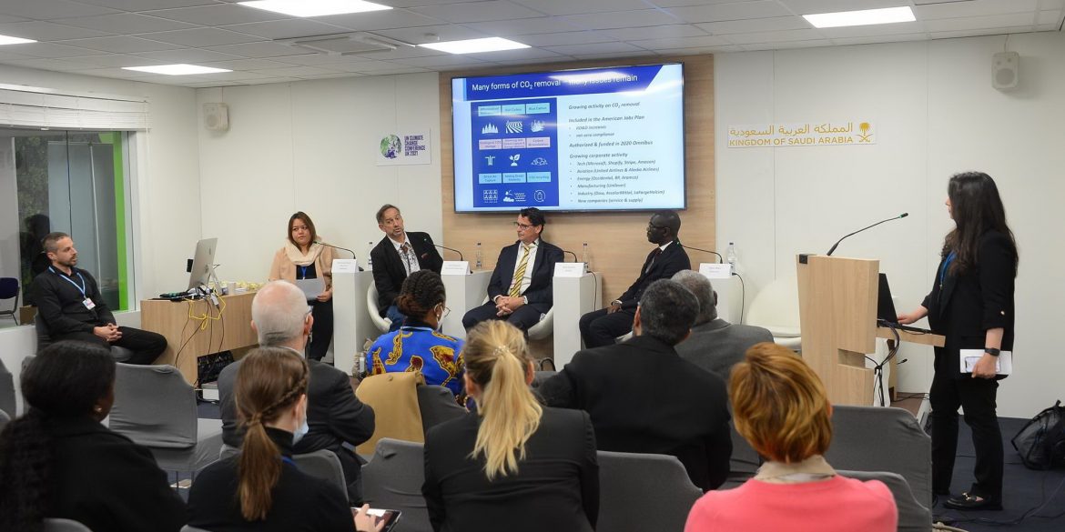شهد جناح المملكة في مؤتمر الأمم المتحدة للمناخ COP26 مساء أمس جلسة نقاش حول التقنيات الحالية والمستقبلية لاستخلاص، الكربون حضرها عدد من الأكاديميين والمهتمين بقضايا المناخ.