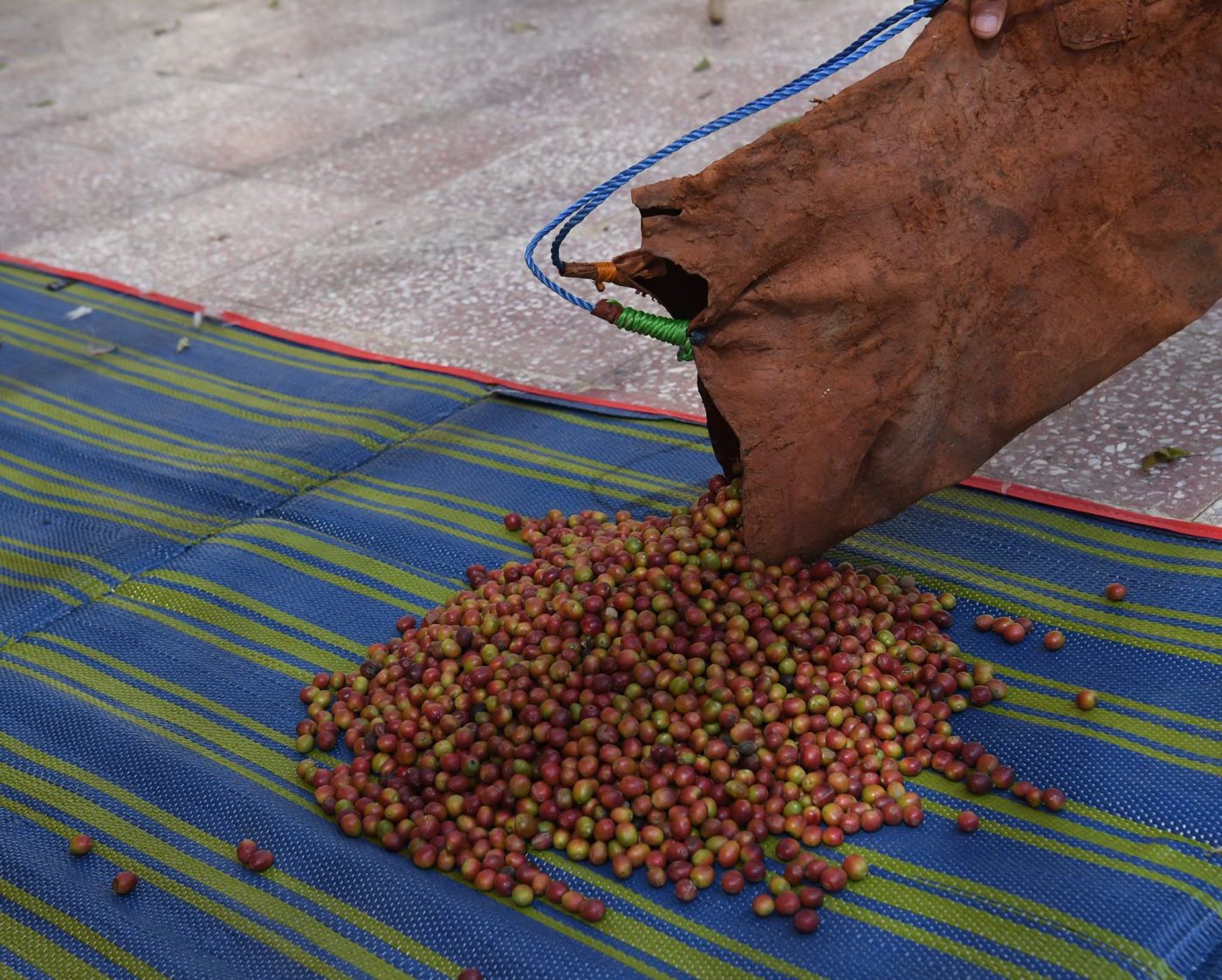 ويعتني المزارعون خلال مرحلة الجني بثمار البن بقطفها ووضعها في جرابٍ خاصة، قبل أن تبدأ مرحلة التجفيف بوضع ثمار البن في أماكن مخصصة في الظل ويتم خلالها تقليب الثمار لمدة تصل لثلاثة أسابيع، حيث يساعد التجفيف ببطء الثمرة في الاحتفاظ بنكهتها لتكون جاهزة بعد جفافها، لتبدأ مرحلة أخرى في المطاحن لفصل ثمار البن عن القشور ومن ثم مرحلتي الحمص والطحن.