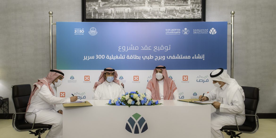 شهد صاحب السمو الملكي الأمير فيصل بن سلمان بن عبدالعزيز أمير منطقة المدينة المنورة بحضور معالي وزير الشؤون البلدية والقروية والإسكان الأستاذ ماجد بن عبدالله الحقيل مراسم توقيع عقد مشروع إنشاء وتشغيل وصيانة مستشفى وبرج طبي بسعة 300 سرير على مساحة تزيد عن 18 ألف متر مربع على طريق الملك عبدالله بن عبدالعزيز (الدائري الثاني) في المدينة المنورة.