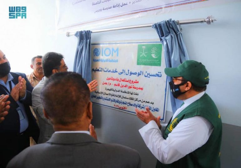 افتتح مركز الملك سلمان للإغاثة والأعمال الإنسانية بمحافظة عدن أربع مدارس بعد استكمال إعادة تأهيلها وتوسعتها بفصول دراسية إضافية مع ملحقاتها الإدارية والخدمية، وذلك بالتعاون مع منظمة الهجرة الدولية.