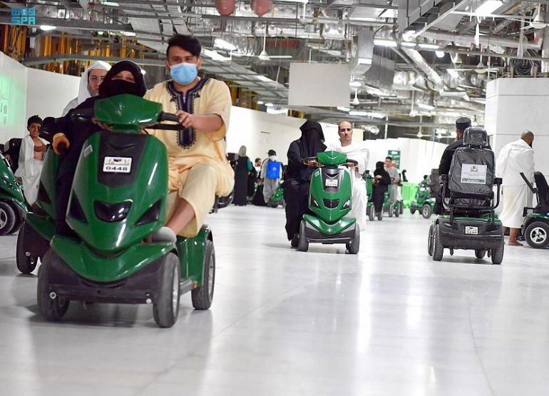 وتطويراً لمنظومة الأعمال التي يشهدها المسجد الحرام فقد قامت الرئاسة بإدخال خدمة العربات الكهربائية الحديثة ذات المواصفات والمقاييس العالمية، والاستفادة من التقنية الحديثة في جميع المجالات، مما يخدم قاصدي المسجد الحرام من الحجاج والمعتمرين والزوّار, حيث تم إضافة عربات كهربائية حديثة جاءت بتصميم خفيف الوزن، مع محرك كهربائي “باور جلايد”, وحاصلة على براءة اختراع الهندسة الذكية، كما أنها سهلة النقل والطي والدفع، كما وفرت الرئاسة تطبيق “تنقل” الذي يعد وسيلة سهلة لضيوف بيت الله الحرام للقيام بحجز العربات الكهربائية والعادية للطواف والسعي داخل المسجد الحرام مع إمكانية الدفع من خلاله.