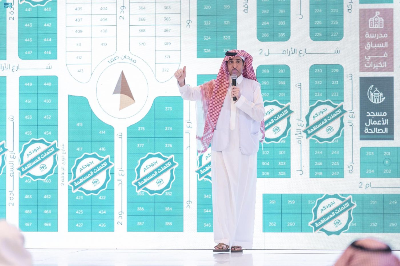 وشهد الحفل إغلاق 789 حالة سكنية للأسر الأشد حاجة، وذلك في إطار تحقيق مستهدفات برنامج الإسكان بالوصول إلى نسبة 70% للتملك السكني في عام 2030، كما جرى إطلاق مخطط جود الذهبي الافتراضي المخصص للأسر الأشد حاجة بواقع 489 قطعة موزعة على 38 مربعاً سكنياً تم بيعها وإغلاق تبرعاتها بالكامل خلال 30 دقيقة من كبار المانحين وأصحاب العطاءات الخيرية.