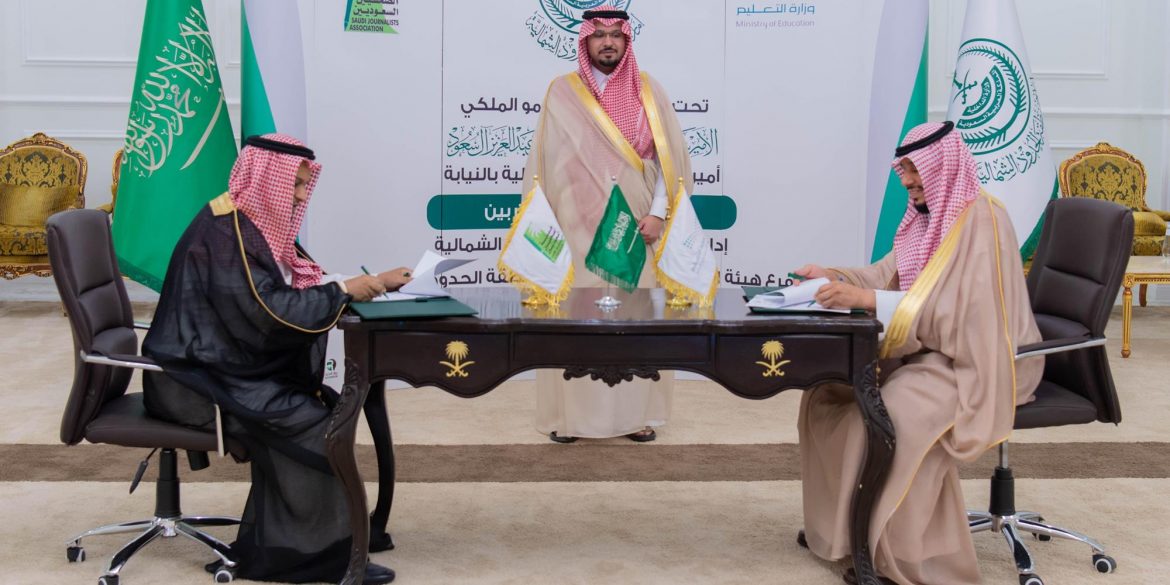 شهد صاحب السمو الملكي الأمير سعود بن عبدالرحمن بن ناصر بن عبدالعزيز أمير منطقة الحدود الشمالية بالنيابة بمقر الإمارة اليوم, توقيع اتفاقية تعاون بين الإدارة العامة للتعليم بالمنطقة ومثلها مدير عام التعليم بالمنطقة عثمان العثمان، وفرع هيئة الصحفيين السعوديين ومثله مدير الفرع خالد العنزي.