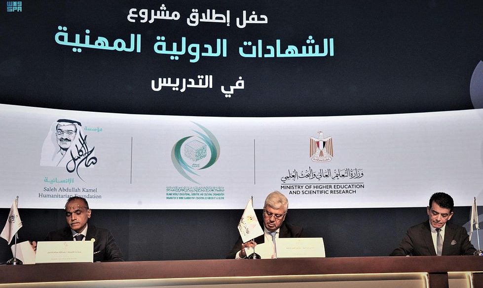 وَقَّعَ معالي مدير منظمة العالم الإسلامي للتربية والعلوم والثقافة “إيسيسكو” الدكتور سالم بن محمد المالك، ومعالي وزير التعليم العالي والبحث العلمي المصري محمد أيمن عاشور، ورئيس مجلس أمناء مؤسسة صالح كامل الإنسانية عبدالله صالح كامل- في القاهرة، اليوم- مذكرةَ تفاهم لإطلاق مشروع “الشهادات الدولية المهنية في التدريس” في مصر.