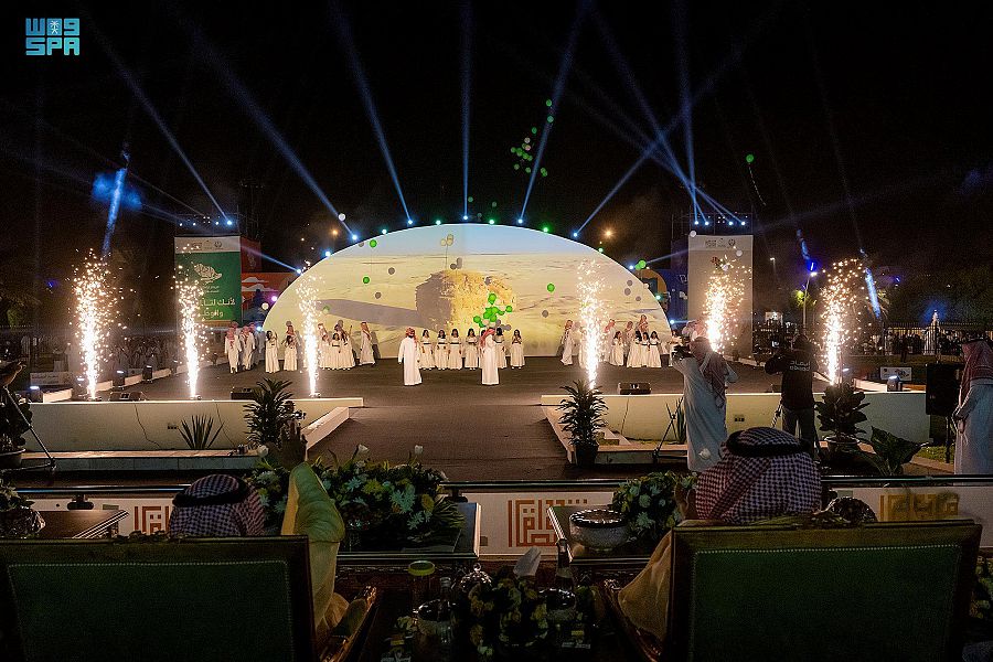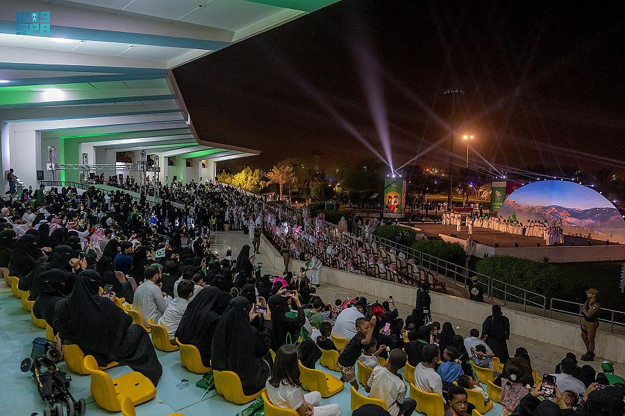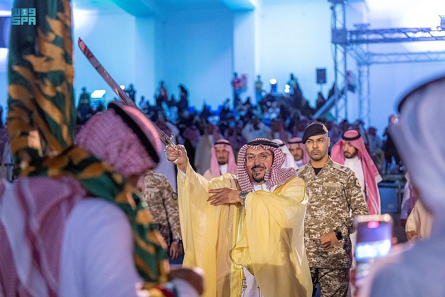 وقد تخلل الاحتفال “أوبريت” وطني يجسد مراحل التطور والبناء للمملكة منذ تأسيسها، وقصائد وطنية، كما شارك سموه في العرضة السعودية، التي نفذتها فرقة دار التراث بمحافظة عنيزة .