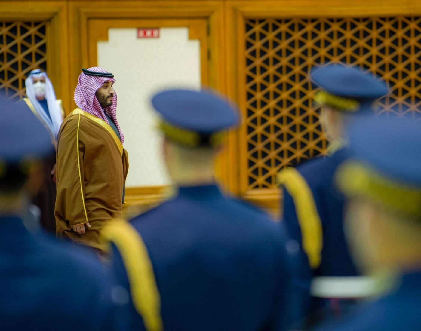 وقد وصل في معية سمو ولي العهد صاحب السمو الملكي الأمير عبدالعزيز بن سلمان بن عبدالعزيز وزير الطاقة، وصاحب السمو الملكي الأمير تركي بن محمد بن فهد بن عبدالعزيز وزير الدولة عضو مجلس الوزراء، وصاحب السمو الملكي الأمير عبدالعزيز بن سعود بن نايف بن عبدالعزيز وزير الداخلية، وصاحب السمو الملكي الأمير عبدالله بن بندر بن عبدالعزيز وزير الحرس الوطني، وصاحب السمو الملكي الأمير سعود بن سلمان بن عبدالعزيز، وصاحب السمو الملكي الأمير خالد بن سلمان بن عبدالعزيز وزير الدفاع، وصاحب السمو الأمير فيصل بن فرحان بن عبدالله وزير الخارجية، ومعالي وزير الدولة عضو مجلس الوزراء مستشار الأمن الوطني الدكتور مساعد بن محمد العيبان، ومعالي وزير التجارة وزير الإعلام المكلف الدكتور ماجد بن عبدالله القصبي، ومعالي وزير الاستثمار المهندس خالد بن عبدالعزيز الفالح، ومعالي وزير الاقتصاد والتخطيط الأستاذ فيصل بن فاضل الابراهيم، ومعالي محافظ صندوق الاستثمارات العامة الأستاذ ياسر بن عثمان الرميان، ومعالي سكرتير سمو ولي العهد الدكتور بندر بن عبيد الرشيد، ومعالي نائب رئيس المراسم الملكية الأستاذ راكان بن محمد الطبيشي.