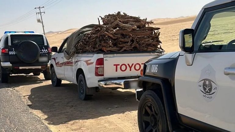 ضبطت دوريات الأمن في مناطق الرياض ومكة المكرمة والقصيم والحدود الشمالية ونجران والجوف وحائل، “11” مخالفًا لنظام البيئة، “10” مواطنين ومقيم من الجنسية اليمنية، بحوزتهم حطب محلي معروض للبيع على متن “9” مركبات، واتخذت بحقهم الإجراءات النظامية، وسلموا المضبوطات لجهة الاختصاص.