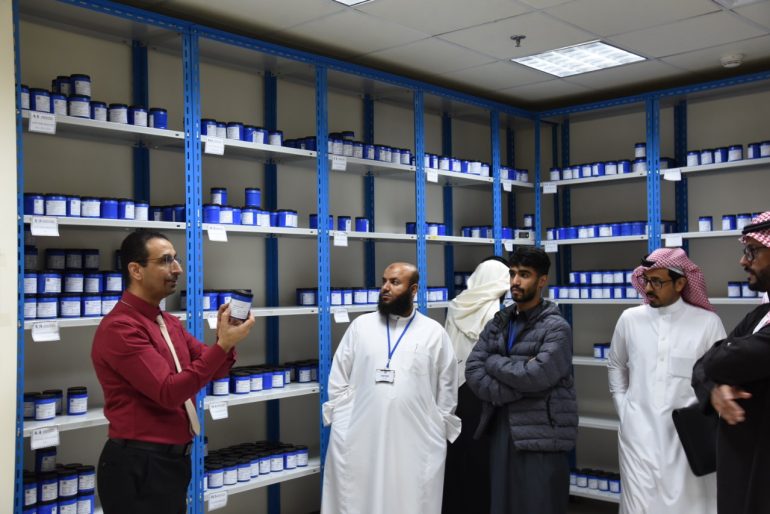 والتقى وفد جامعة الملك سعود برئيس مجلس إدارة الشركة الذي تحدث عن أهمية تحقيق الأمن الدوائي الوطني وسعي الشركة لما يسهم بذلك وعن تجربة الشركة كما اطلع الطلاب والطالبات على جميع مرافق المصنع والتي من خلالها تم تعريفهم على آلية التصنيع للمواد الفعّالة للأدوية.