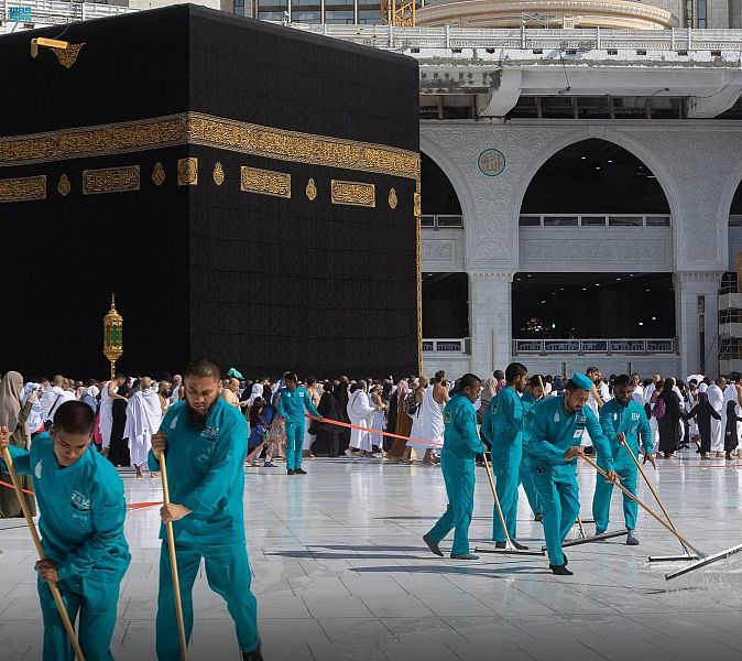 كما قام “200” مشرف للقيام بمراقبة الأعمال الميدانية على “4000” عامل وعاملة، لغسل المسجد الحرام “10” مرات، وتهيئة “7000” عبوة ماء زمزم و”800″ عامل لتوزيع الماء المبارك على المصلين والمعتمرين، فيما وُزعت “4500” حافظة ماء زمزم في أرجاء المسجد الحرام، يستهلك من خلالها حوالي “500” ألف لتر.