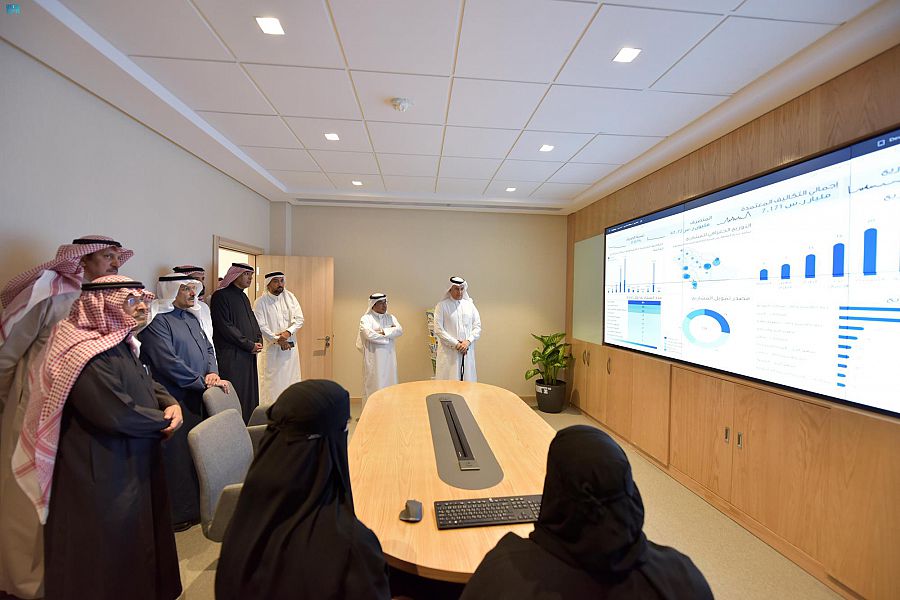 واطّلع معاليه على نظام دعم اتخاذ القرار حيث شاهد عرضاً موجزاً عن ماهية نظام دعم اتخاذ القرار ومنصة ذكاء الأعمال ودورها في استخلاص القيمة والمعرفة من البيانات، واستعرض فريق العمل اللوحات التفاعلية الرئيسية للمؤشرات التابعة لقطاعات المؤسسة.