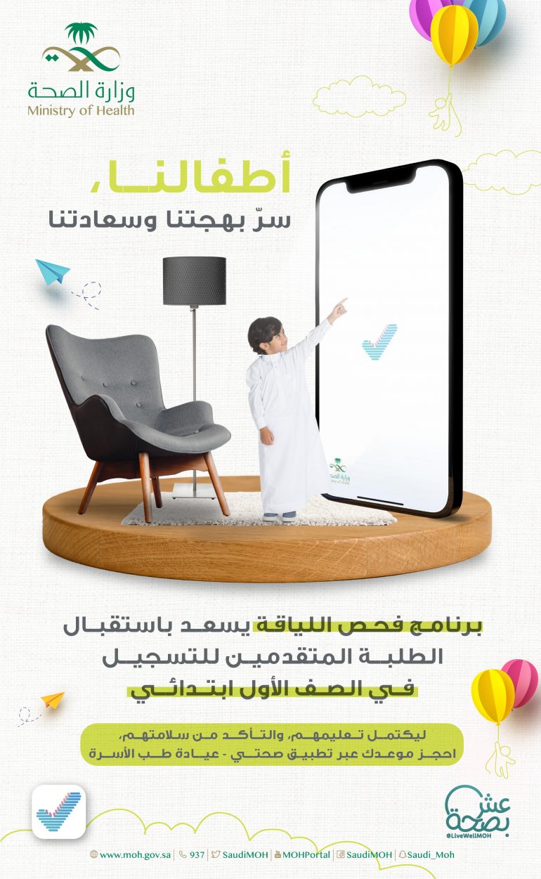 وأكدت الصحة ضرورة التأكد من استكمال الطفل للتطعيمات الأساسية وفق جدول التطعيمات الوطني، وذلك بإحضار كرت التطعيمات للطفل أثناء الفحص، وفحص اللياقة المدرسي الذي لا يتطلب إحضار استمارة الفحص الورقية، حيث سيتم إدخال النتيجة إلكترونيًا. وأشارت الصحة أنه بالإمكان حجز موعد عبر تطبيق صحتي عيادات طب الأسرة وذلك لضمان التأكد من سلامة الطلبة واكتمال تعليمهم بصحة ولياقة سليمة.