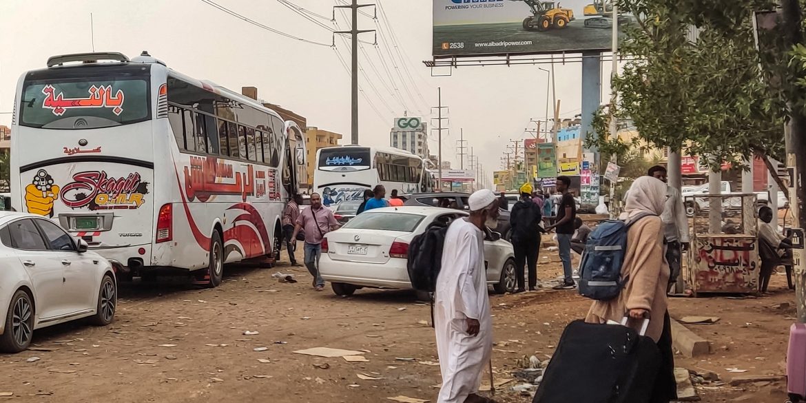 People prepare to board a bus departing from Khartoum in the Sudanese capital's south on April 24, 2023, as battles rage in the city between the army and paramilitaries. (Photo by AFP)