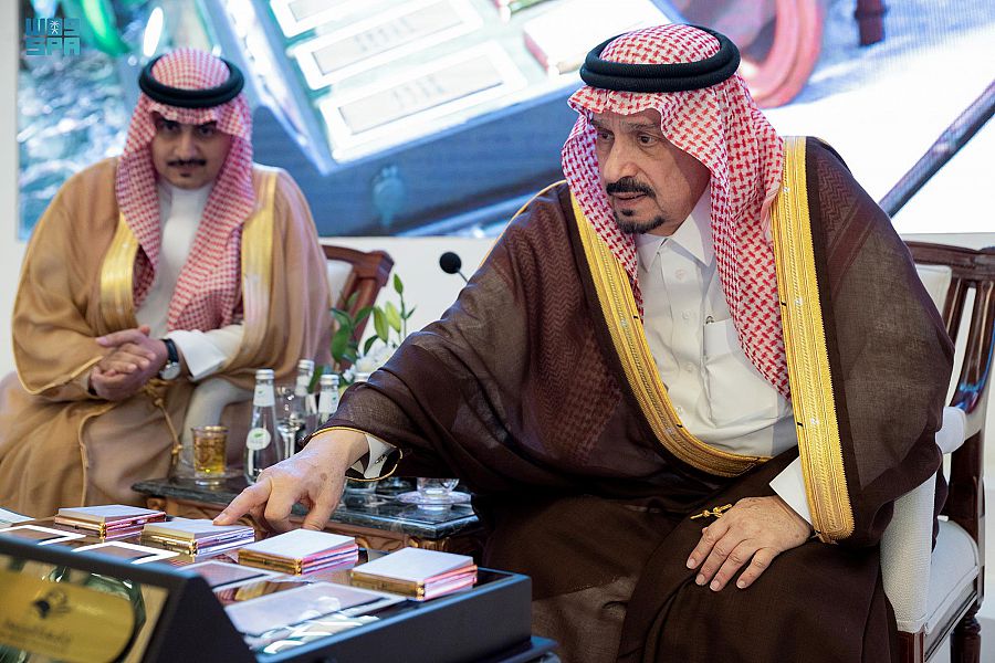 وكان في استقبال سموِّه لدى وصوله مقر الحفل صاحبُ السموِّ الأمير عبدالرحمن بن عبدالله بن فيصل،محافظ المجمعة، ورئيس جامعة المجمعة الدكتور صالح بن عبدالله المزعل.