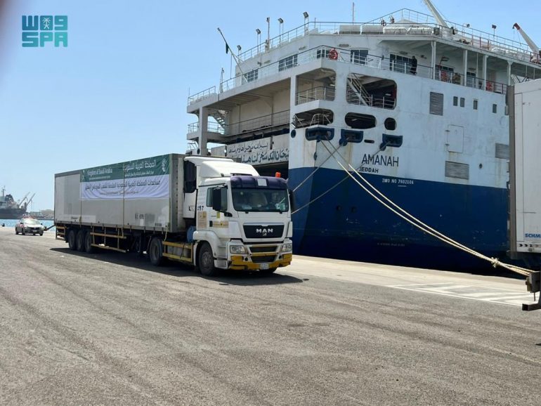 إنفاذًا لتوجيهات خادم الحرمين الشريفين الملك سلمان بن عبدالعزيز آل سعود وصاحب السمو الملكي الأمير محمد بن سلمان بن عبدالعزيز آل سعود ولي العهد رئيس مجلس الوزراء -حفظهما الله- للإسهام في تخفيف آثار الأوضاع التي يمر بها الشعب السوداني حاليًا، سيّر مركز الملك سلمان للإغاثة والأعمال الإنسانية من ميناء جدة الإسلامي اليوم أولى طلائع الجسر البحري الإغاثي السعودي متوجهة إلى ميناء بورتسودان بجمهورية السودان الشقيقة، وتشتمل على 50 طنًّا من السلال الغذائية.