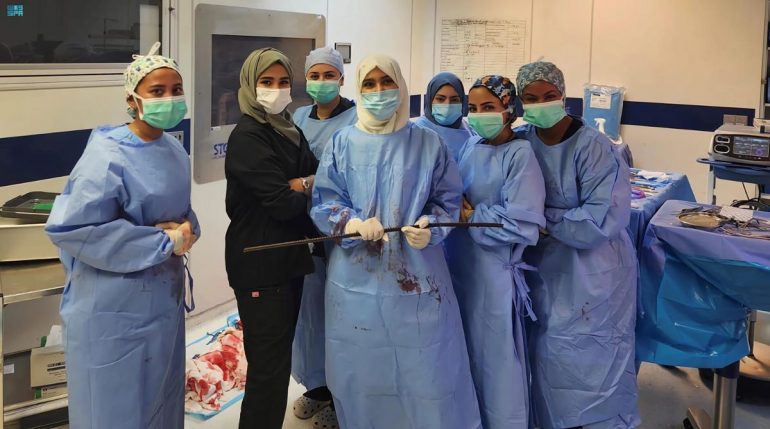 وأوضحت رئيسة الفريق الطبي استشارية جراحة عامة وجراحة القولون والمستقيم، أنه تم تكوين فريق طبي مكون من ( جراحة أوعية دموية وجراحة الصدر وجراحة العظام )، وتم استقبال الحالة على الفور ونقلها إلى غرفة العمليات كونها حالة إنقاذ حياة وعمل جميع التدخلات الجراحية التي تستدعيها حالة المريض في تلك العملية وبفضل الله تم استخراج السيخ من جسد المريض وتم تنويمه بالعناية المركزة وإعطاء المريض العناية المطلوبة بعد العملية الجراحية ولله الحمد تم نجاح العملية وخروج المريض بصحة جيدة.