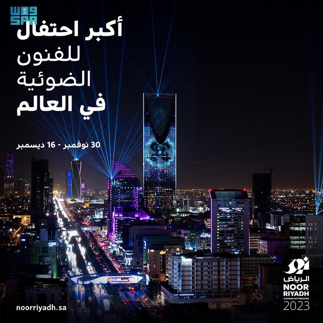 تنطلق النسخة الثالثة من “احتفال نور الرياض 2023″، خلال الفترة من 18 جمادى الأولى إلى 16 جمادى الآخرة 1445هـ، الموافق من 30 نوفمبر إلى 16 ديسمبر 2023م، لمدة 17 يوماً، بمشاركة أكثر من 100 فنان من كبار الفنانين المعاصرين، ينتمون لأكثر من 35 دولة حول العالم، من بينهم أكثر من 35 فناناً من المملكة.