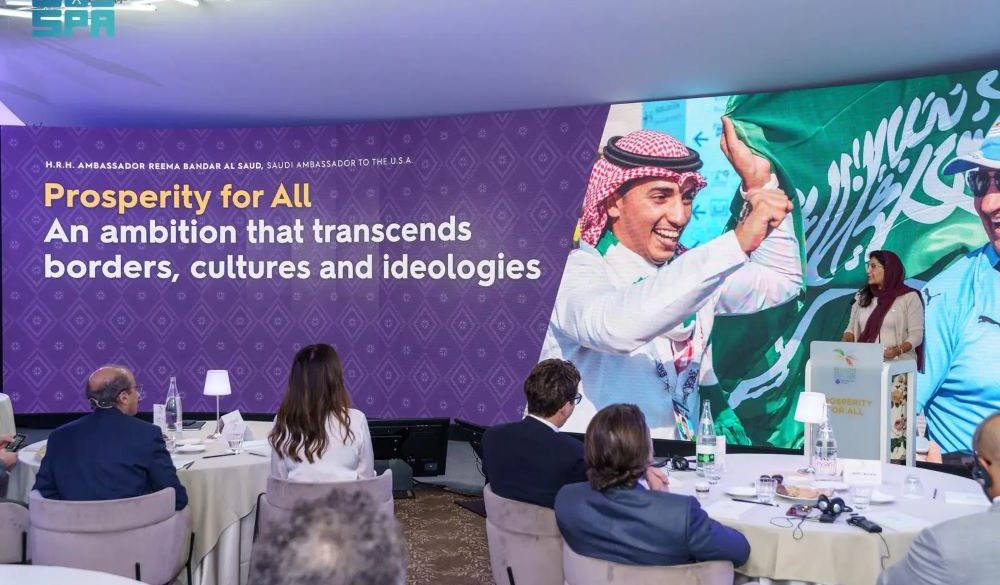 وأكدت صاحبة السمو الملكي الأميرة ريما بنت بندر بن سلطان بن عبدالعزيز سفيرة خادم الحرمين الشريفين لدى الولايات المتحدة الأمريكية ، أن اقتصاد المملكة الأسرع نموًا بين دول مجموعة العشرين في حين تضاعفت إيراداتها الحكومية غير النفطية، مضيفة أن المملكة حققت أعلى معدل توظيف في تاريخها، إذ تضاعفت مشاركة المرأة في سوق العمل، وارتفعت نسب تملكها لعدد من المؤسسات الصغيرة والمتوسطة حيث أصبح الآن ما يقارب 40 بالمائة من الشركات الناشئة مملوكة للنساء.