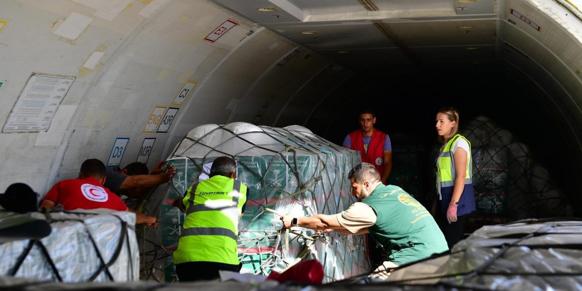وصلت إلى مطار العريش الدولي بجمهورية مصر العربية اليوم الطائرة الإغاثية السعودية السادسة، تحمل على متنها مساعدات إغاثية متنوعة شملت مواد غذائية وإيوائية بوزن إجمالي يبلغ 35 طناً، تمهيداً لنقلها إلى المتضررين داخل قطاع غزة، وذلك ضمن الحملة الشعبية لإغاثة الشعب الفلسطيني الشقيق في قطاع غزة، والتي وجه بها خادم الحرمين الشريفين الملك سلمان بن عبدالعزيز آل سعود وصاحب السمو الملكي الأمير محمد بن سلمان بن عبدالعزيز ولي العهد رئيس مجلس الوزراء ـ حفظهما الله ـ.