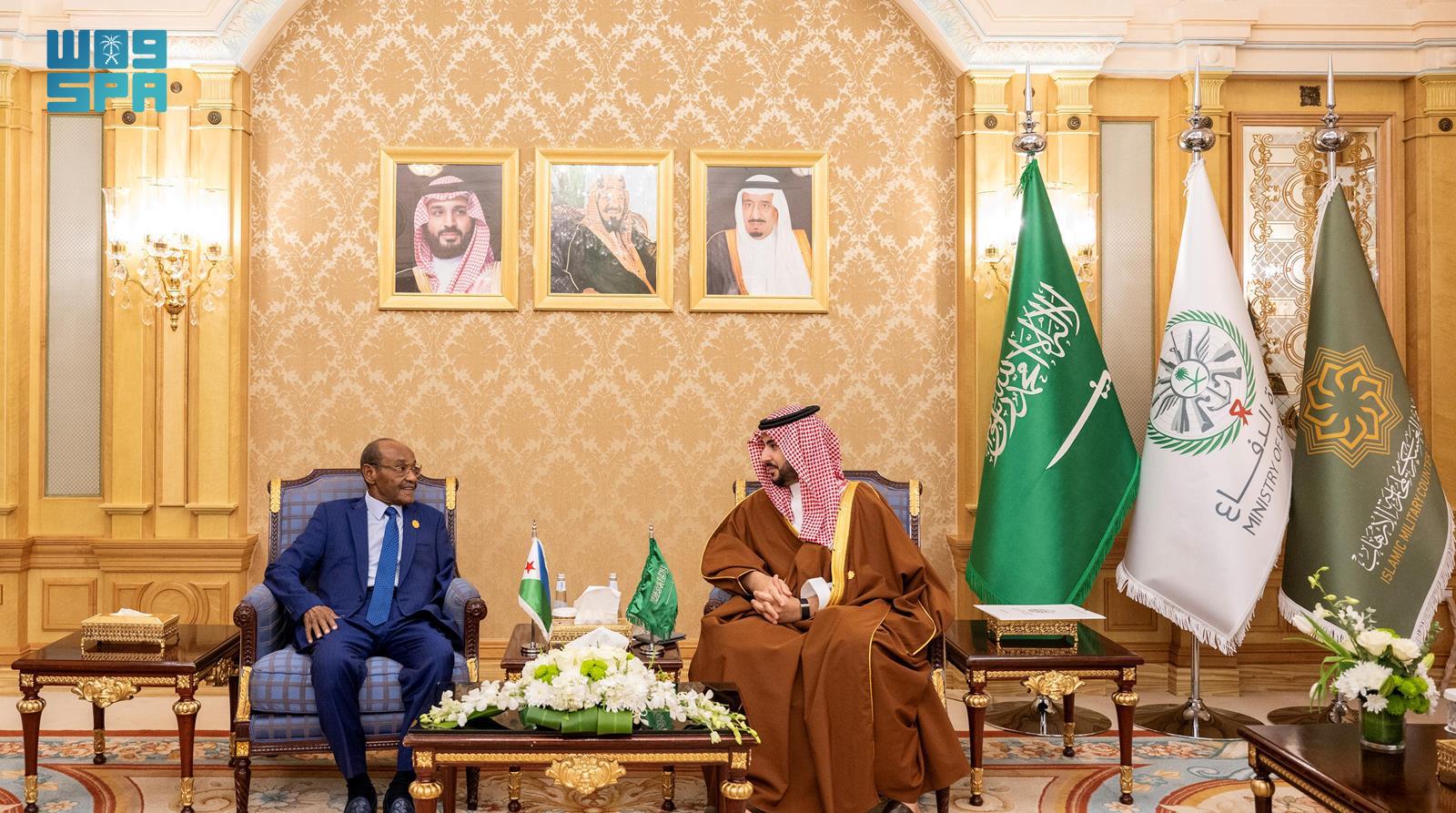التقى صاحب السمو الملكي الأمير خالد بن سلمان بن عبدالعزيز وزير الدفاع رئيس مجلس وزراء دفاع دول التحالف الإسلامي العسكري لمحاربة الإرهاب، بالرياض اليوم، معالي وزير الدفاع المكلف بالعلاقات مع البرلمان بجمهورية جيبوتي حسن عمر برهان، ومعالي وزير الدفاع بجمهورية السودان الفريق الركن المتقاعد ياسين إبراهيم ياسين عبدالهادي، ومعالي وزير الدفاع بالجمهورية الإسلامية الموريتانية حننه ولد سيدي، وذلك على هامش الاجتماع الثاني لمجلس وزراء دفاع دول التحالف الإسلامي العسكري لمحاربة الإرهاب، الذي تستضيفه الرياض.