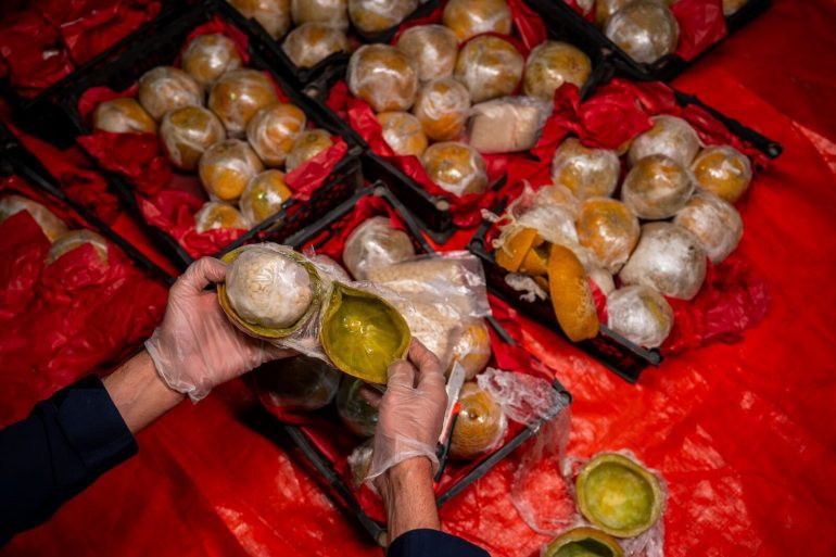 وأوضحت الهيئة أنه عند إجراء عملية الكشف والمعاينة لإحدى الشاحنات القادمة عبر المنفذ عثر على تلك الكمية من الحبوب مخبأة داخل إرسالية شمام، وذلك بإخفاء الحبوب في تجويف ثمار الشمام، وتغليفها.
