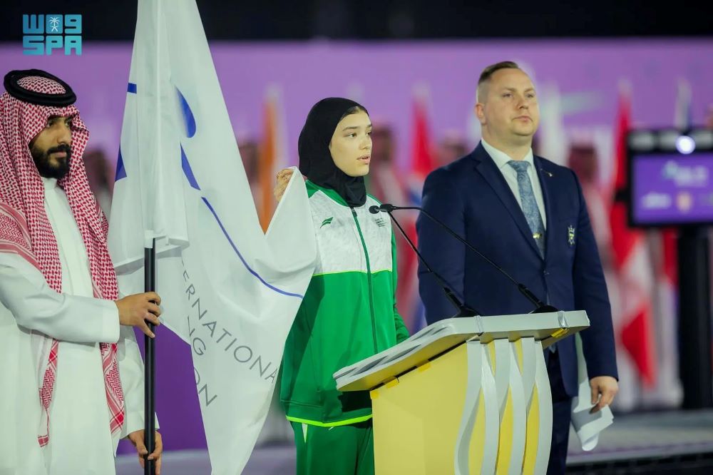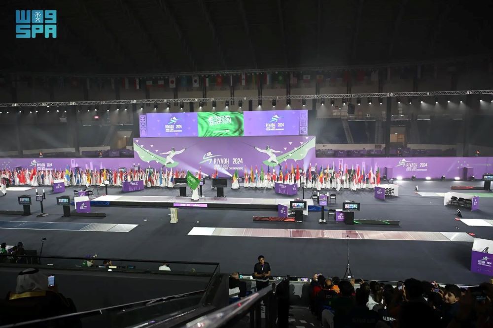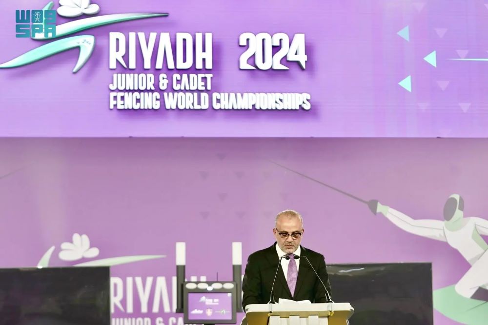 نيابة عن صاحب السمو الملكي الأمير عبدالعزيز بن تركي بن فيصل بن عبدالعزيز وزير الرياضة رئيس اللجنة الأولمبية والبارالمبية السعودية، افتتح مساعد وزير الرياضة عبدالإله بن سعد الدلاك، مساء اليوم، بطولة العالم للمبارزة للناشئين والشباب، في صالة الأرينا بجامعة الملك سعود بمدينة الرياض، بحضور رئيس الاتحاد السعودي للمبارزة رئيس اللجنة العليا المنظمة للبطولة أحمد الصبان، ونائب رئيس الاتحاد الدولي للمبارزة عبد المنعم الحسيني، وصاحب السمو الأمير عبدالله بن فهد بن عبدالله عضو مجلس إدارة اللجنة الأولمبية البارالمبية السعودية رئيس الاتحاد السعودي للفروسية.
