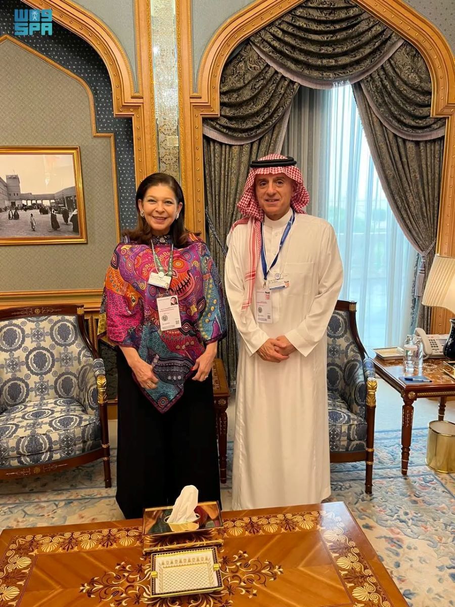 التقى معالي وزير الدولة للشؤون الخارجية عضو مجلس الوزراء ومبعوث شؤون المناخ الأستاذ عادل بن أحمد الجبير، بالرياض، نائبة وزيرة خارجية الولايات المتحدة المكسيكية السفيرة ماريا تيريزا ميركادو، وذلك على هامش الاجتماع الخاص للمنتدى الاقتصادي العالمي.