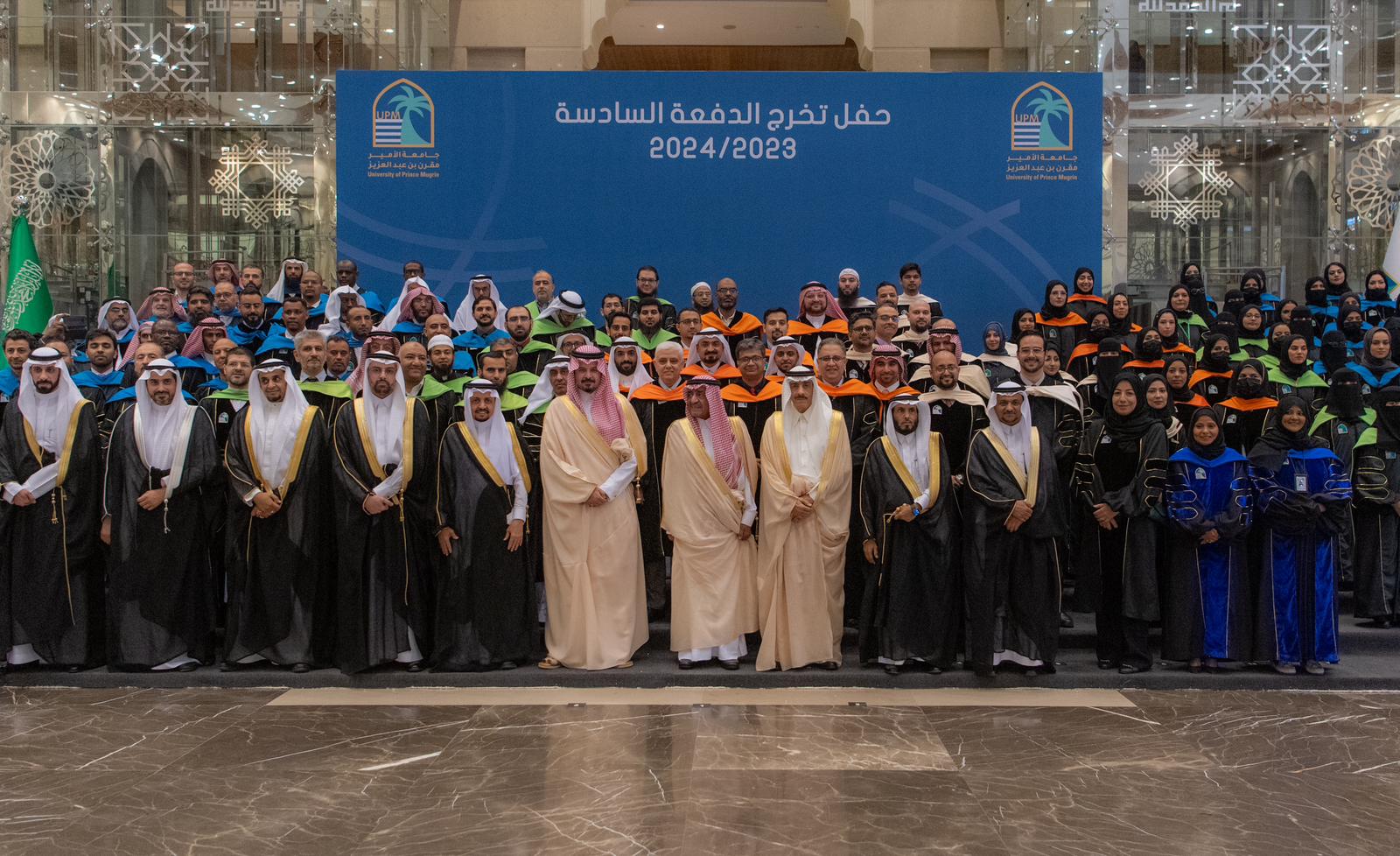 رعى صاحب السمو الملكي الأمير مقرن بن عبدالعزيز، الرئيس الفخري لجامعة الأمير مقرن للعام الجامعي 1445هـ، حفل تخريج الدفعة السادسة لطلاب جامعة الأمير مقرن بالمدينة المنورة, والبالغ عددهم 368 خريجاً وخريجة، وذلك بحضور صاحب السمو الملكي الأمير سلمان بن سلطان بن عبدالعزيز، أمير منطقة المدينة المنورة، وصاحب السمو الملكي الأمير فيصل بن مقرن بن عبدالعزيز، رئيس مجلس إدارة جمعية البيان الخيرية للتعليم.