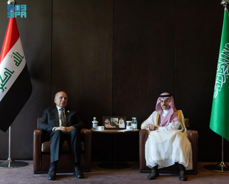 التقى صاحب السمو الأمير فيصل بن فرحان بن عبدالله وزير الخارجية اليوم نائب رئيس مجلس الوزراء وزير الخارجية بجمهورية العراق الدكتور فؤاد محمد حسين في عاصمة جمهورية الصين الشعبية بكين.