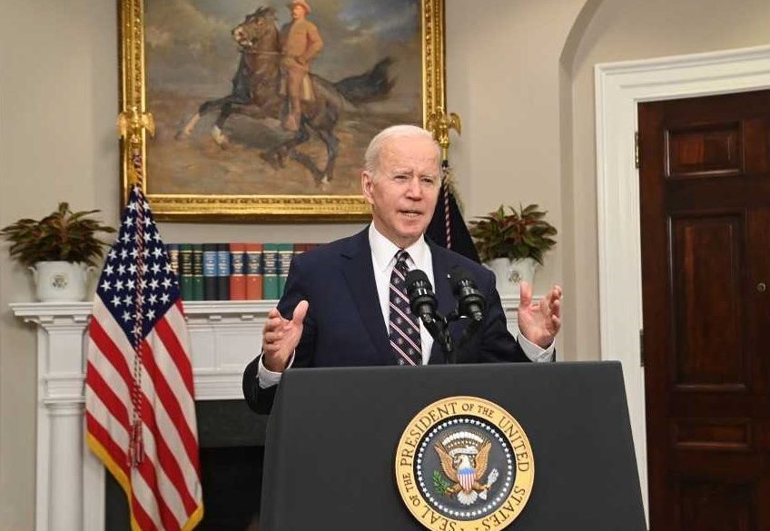 US President Joe Biden speaks about the counterterrorism operation in Syria from the Roosevelt Room of the White House in Washington, DC, on February 3, 2022. - Biden said Thursday the death of the Islamic State leader in a US raid in Syria "removed a major terrorist threat." "The United States military forces successfully removed a major terrorist threat to the world, the global leader of ISIS," Abu Ibrahim al-Hashimi al-Qurashi, Biden said at a press conference on the overnight raid. (Photo by SAUL LOEB / AFP)