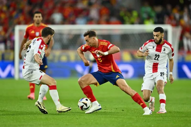 أحرز أهداف المباراة كل من روبين لو نورماند (في مرماه) بالدقيقة 18 لصالح منتخب جورجيا قبل أن يعود الماتادور الإسباني برباعية عن طريق كل من رودريجو هيرنانديز، فابيان رويز، نيكو ويليامز، وداني أولمو في الدقائق 39، 51، 75 و83 على التوالي.