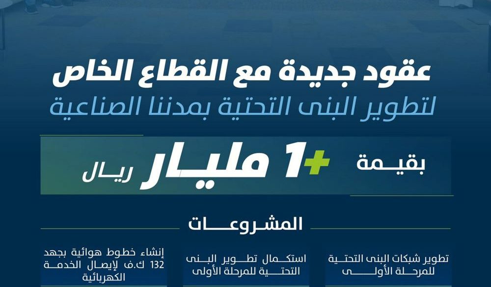 وتشمل المشروعات الجديدة، توقيع عقد استكمال مشروعات تطوير البنى التحتية للمرحلة الأولى في المدينة الصناعية الثالثة بجدة؛ وعقد تطوير البنى التحتية للمرحلة الأولى في المدينة الصناعية الثانية بمكة المكرمة وتوفير أراضٍ استثمارية بمساحات 4.3 ملايين متر مربع؛ وذلك لتطوير منظومتها الاستثمارية ومواكبة تطلعات المستثمرين المحليين والعالميين، كما وقّعت عقد تطوير البنى التحتية في المدينة الصناعية الثالثة بالدمام، وتوفير أراضٍ استثمارية بمساحات 2.5 مليون متر مربع تلبية للطلب العالي على الاستثمار الصناعي بالمنطقة الشرقية.
