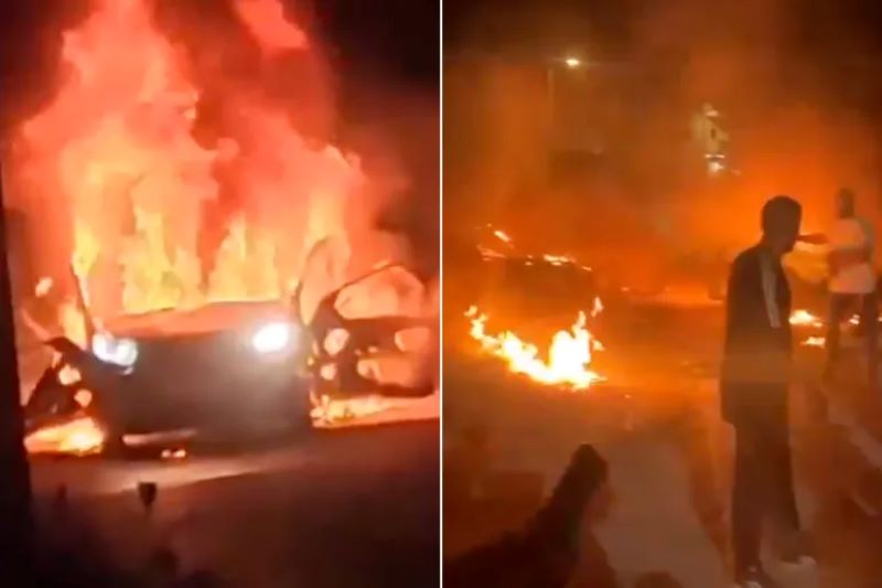 وأظهرت مقاطع فيديو منتشرة على منصة “إكس” اندلاع النيران في الموقع الذي تعرض للقصف الإسرائيلي.