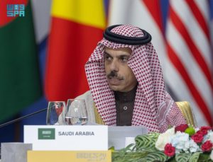 وأكد سمو وزير الخارجية في ختام كلمته أن المملكة ستواصل تعزيز شراكاتها مع مجموعة دول “بريكس” وتوسيع آفاق التعاون في المجالات كافة، سعيًا لتحقيق التنمية والازدهار على المستوى الدولي