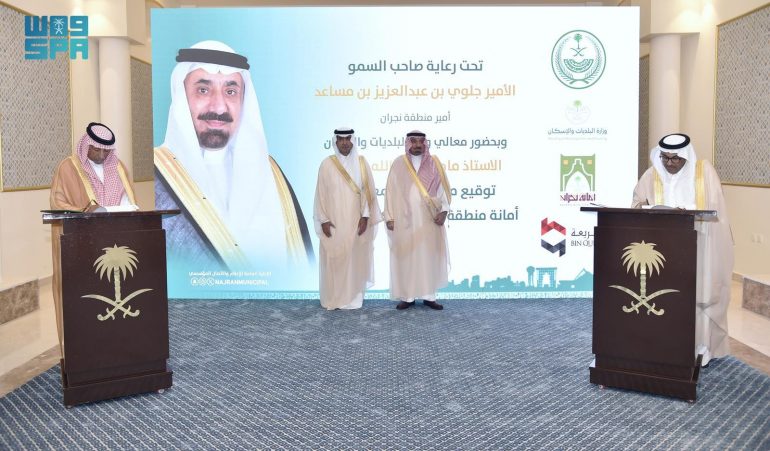 رفع صاحب السمو الأمير جلوي بن عبدالعزيز بن مساعد أمير منطقة نجران الشكر للقيادة الحكيمة -أيدها الله- على ما تحظى به المنطقة من مشروعات تنموية في شتى المجالات أسوةً بباقي مناطق المملكة، مثمنًا جهود وزارة البلديات والإسكان وما تقوم من مشروعات تطويرية وتنموية.