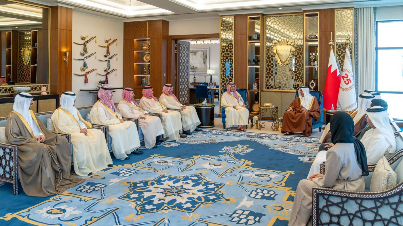جاء ذلك لدى لقائه بقصر القضيبية صاحب السمو الملكي الأمير محمد بن خالد العبدالله الفيصل آل سعود رئيس مجلس إدارة مجموعة الاتصالات السعودية “إس تي سي”، بحضور سمو الشيخ محمد بن سلمان بن حمد آل خليفة، وسعادة السيد حمد بن فيصل المالكي وزير شؤون مجلس الوزراء.
