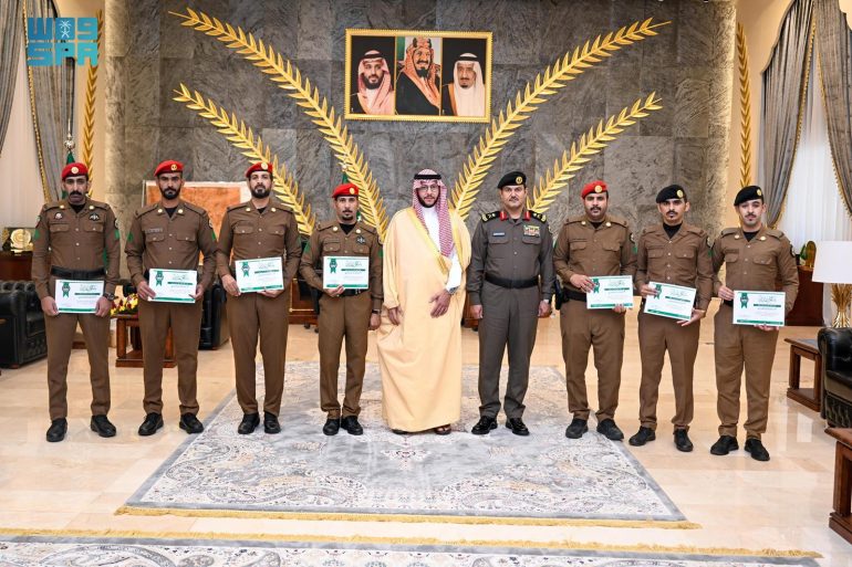 كرم صاحب السمو الملكي الأمير سعود بن نهار بن سعود بن عبدالعزيز محافظ الطائف اليوم، في مقر المحافظة عددًا من منسوبي الشرطة العسكرية في أمن المحافظة بحضور مدير شرطة الطائف بالنيابة اللواء عبدالله الخنفري.