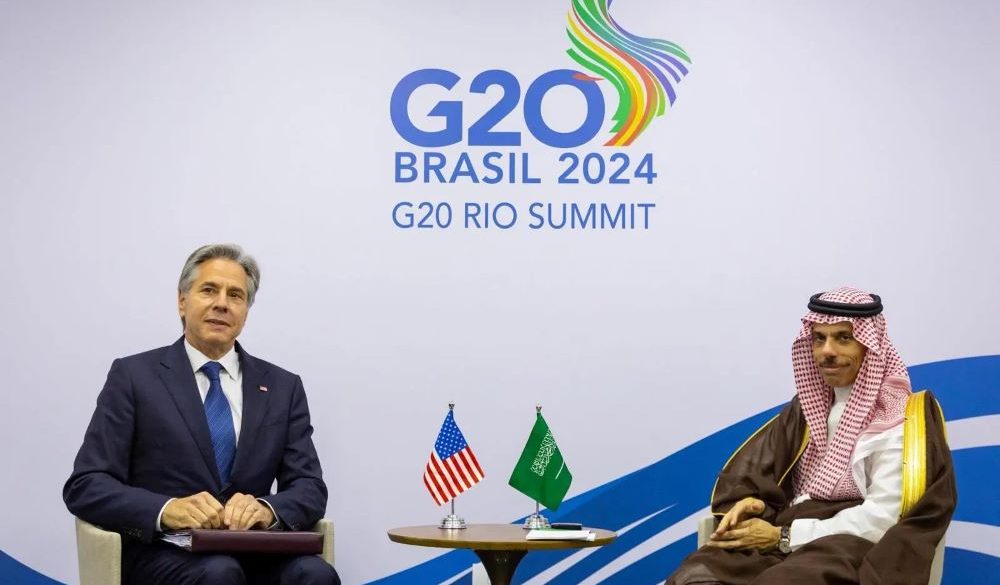التقى صاحب السمو الأمير فيصل بن فرحان بن عبد الله وزير الخارجية، اليوم، معالي وزير خارجية الولايات المتحدة الأمريكية السيد أنتوني بلينكن، وذلك على هامش انعقاد قمة دول مجموعة العشرين، في مدينة ريو دي جانيرو البرازيلية.