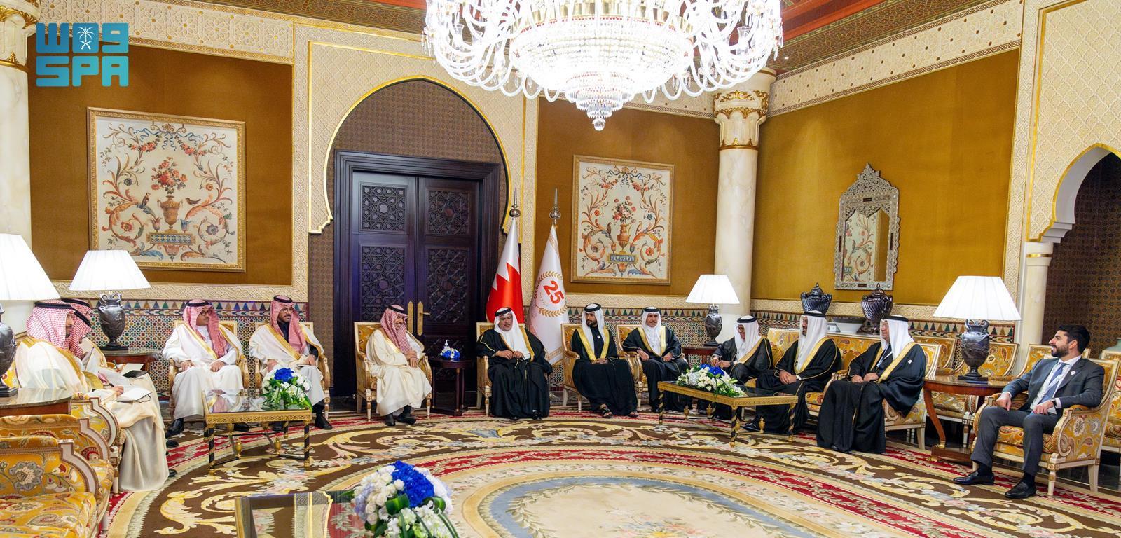 ونقل سموه في بداية الاستقبال تحيات خادم الحرمين الشريفين الملك سلمان بن عبدالعزيز آل سعود، وصاحب السمو الملكي الأمير محمد بن سلمان بن عبدالعزيز آل سعود ولي العهد رئيس مجلس الوزراء – حفظهما الله -، للقيادة البحرينية، وتمنياتهما لحكومة وشعب البحرين الشقيق المزيد من التقدم والازدهار، فيما حمل سمو ولي عهد البحرين تحيات وتقدير القيادة البحرينية لخادم الحرمين الشريفين وسمو ولي العهد رئيس مجلس الوزراء – حفظهما الله – والتمنيات لحكومة وشعب المملكة المزيد من الازدهار والرفاه.