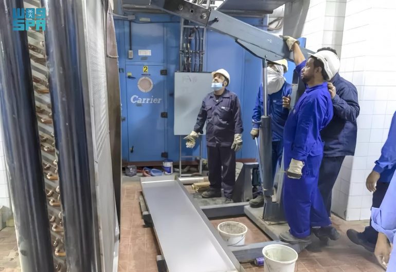 تغطي منظومة التبريد التي تبلغ طاقتها 155 ألف طن وبمساحة تبريد تبلغ 5 ر 1 مليون متر مربع، أرجاء المسجد الحرام لتوفير أقصى درجات الراحة لضيوف الرحمن بما في ذلك الساحات والممرات من خلال الجاهزية العالية، والعمل المستمر والصيانة الدورية لضمان الكفاءة على مدار الساعة.