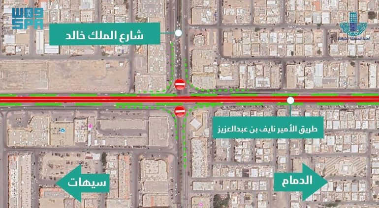 وأوضحت الأمانة بأنه سيتم إغلاق جسر الأمير نايف وتحويل الحركة المرورية إلى الطريق المحلي، مع إغلاق إشارة شارع الملك خالد، ولمدة 8 أيام.