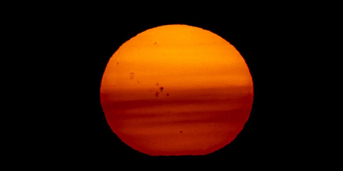 رُصد -اليوم – في سماء مدينة عرعر بمنطقة الحدود الشمالية بقع شمسية ظهرت على قرص الشمس وشوهدت قبل غروب الشمس بدقائق.