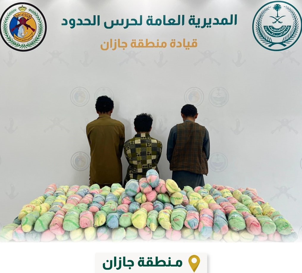قبضت الدوريات البرية لحرس الحدود في قطاع الدائر بمنطقة جازان على “3” مخالفين لنظام أمن الحدود من الجنسية اليمنية، لتهريبهم “144” كيلوجرامًا من نبات القات، وجرى استكمال الإجراءات النظامية الأولية بحقهم، وتسليمهم والمضبوطات لجهة الاختصاص.