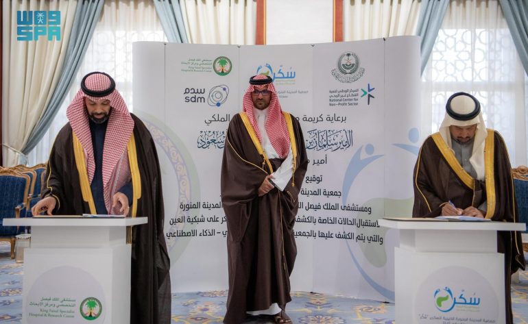 نيابةً عن صاحب السمو الملكي الأمير سلمان بن سلطان بن عبد العزيز أمير منطقة المدينة المنورة، رعى صاحب السمو الملكي الأمير سعود بن خالد بن فيصل نائب أمير المنطقة، توقيع اتفاقية تعاون بين جمعية المدينة المنورة الخيرية للسكري “سُكّر” ومستشفى الملك فيصل التخصصي ومركز الأبحاث بالمدينة المنورة، بهدف تعزيز الكشف المبكر عن مضاعفات مرض السكري على شبكية العين.