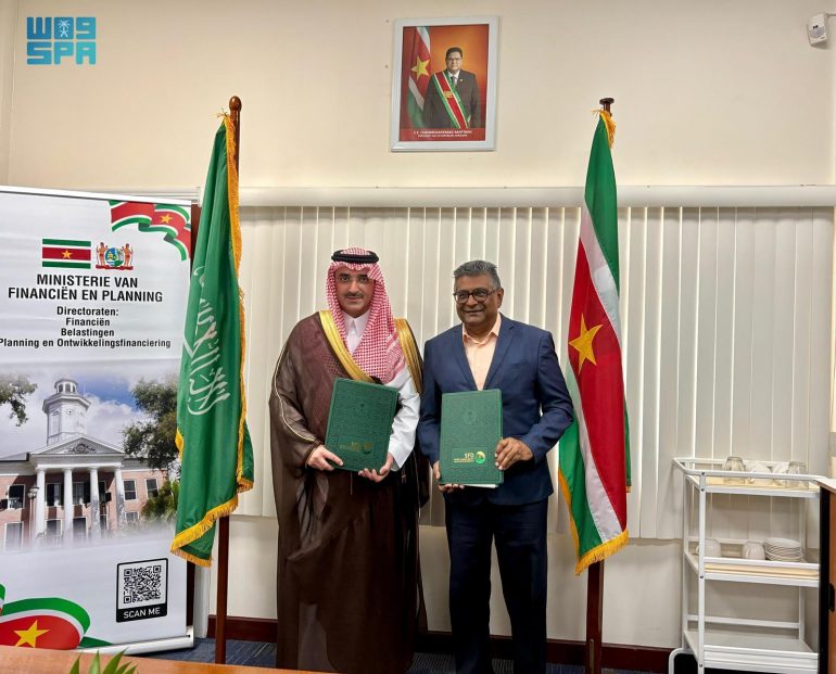 ووقع الاتفاقية الرئيس التنفيذي للصندوق السعودي للتنمية سلطان بن عبدالرحمن المرشد، ومعالي وزير المالية والتخطيط في جمهورية سورينام السيد كيرميشند راغويبارسينج.