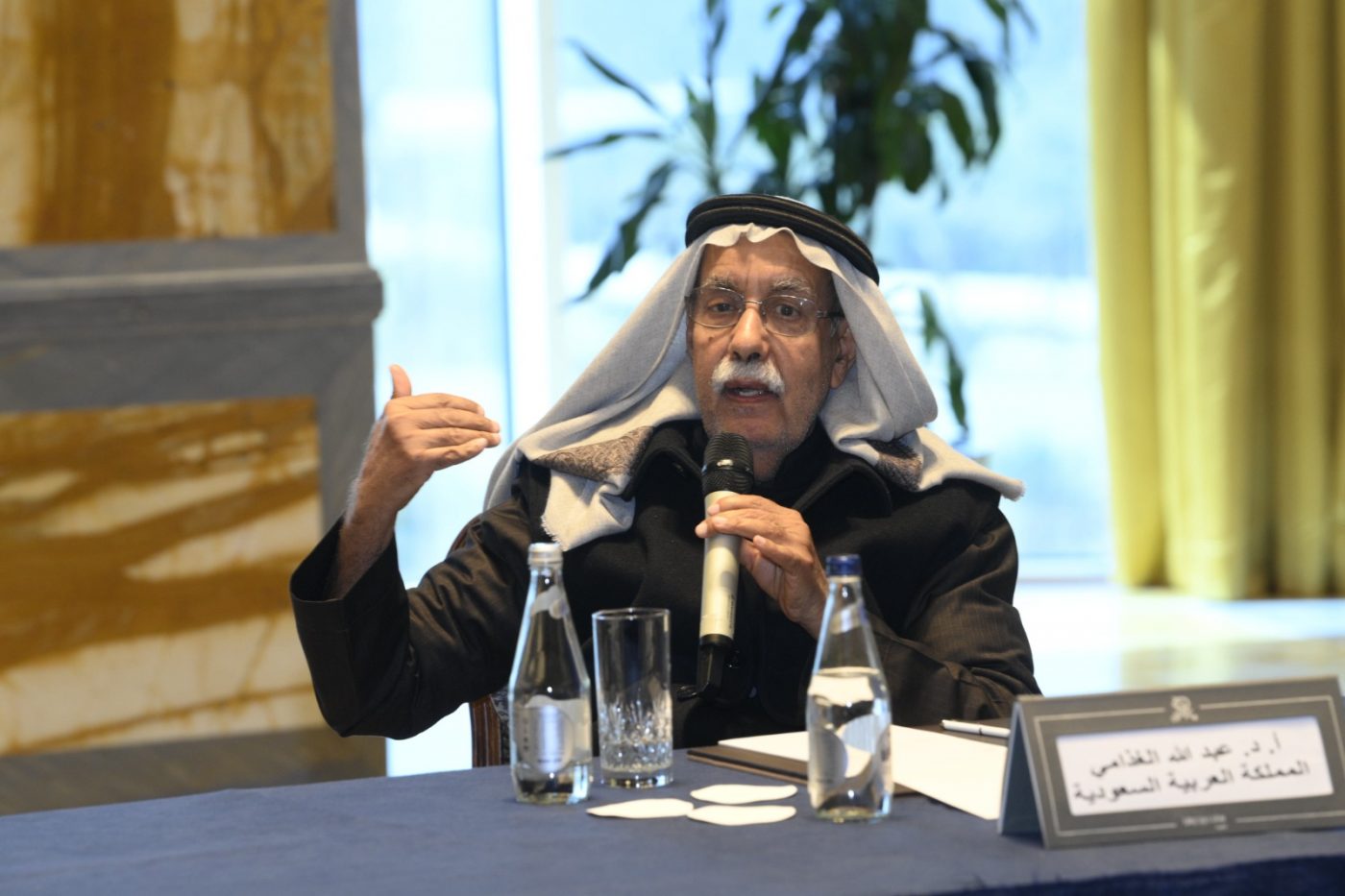 وتحدث الغذامي في جلسة حوارية أقيمت بالتعاون مع مركز منار الثقافي وأدارتها ألطاف المطيري في فندق سانت ريجيس عن مسيرته في عالم النقد والأدب وبداياته في التعمق والبحث العلمي والأدبي.