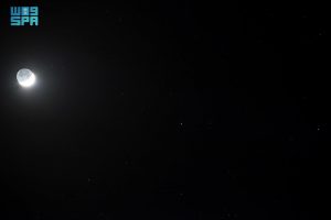 شهدت سماء منطقة الحدود الشمالية مساء أمس, مشهدًا فلكيًّا بديعًا، تمثّل في اقتران هلال شهر ذي الحجة مع كوكبة التوأمان (الجوزاء) في الجهة الغربية من السماء بعد غروب الشمس.