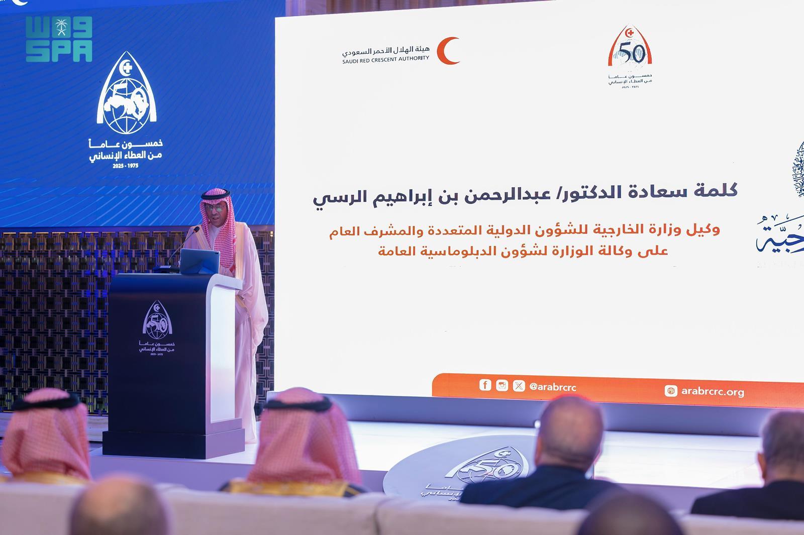 نيابةً عن صاحب السمو الأمير فيصل بن فرحان بن عبدالله وزير الخارجية، شارك وكيل وزارة الخارجية للشؤون الدولية المتعددة المشرف العام على وكالة الوزارة لشؤون الدبلوماسية العامة الدكتور عبدالرحمن بن إبراهيم الرسي، في الرياض اليوم، في حفل اليوبيل الذهبي للمنظمة العربية للهلال الأحمر والصليب الأحمر بمناسبة مرور 50 عامًا على تأسيسها، تحت شعار “خمسون عامًا من العطاء الإنساني”.