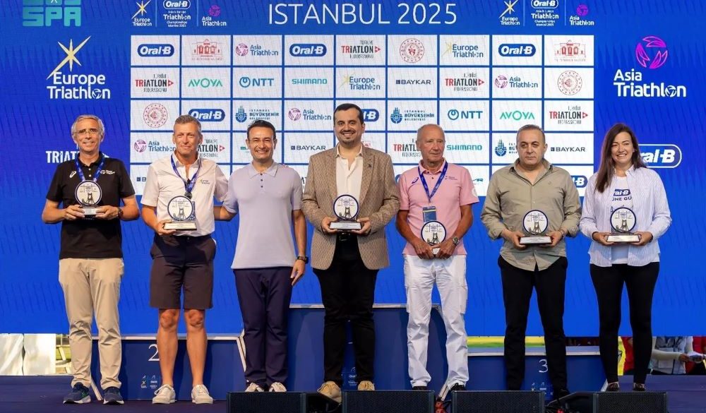 توّج صاحب السمو الأمير فهد بن جلوي بن عبدالعزيز بن مساعد، رئيس الاتحاد الآسيوي للترايثلون، اليوم، الأبطال الفائزين في ختام منافسات بطولة آسيا وأوروبا للترايثلون للنخبة والفئات العمرية 2025، التي استضافتها مدينة إسطنبول التركية على مدى يومين، بمشاركة قياسية تجاوزت (54) دولة ونحو (1400) لاعب ولاعبة، في حدث تاريخي يُقام للمرة الأولى تحت شعار “بناء الجسور”, بحضور رئيس الاتحاد الدولي للترايثلون أنطونيو أريماني، ورئيس الاتحاد الأوروبي مارك دوهوغه، اللذين شاركا في تتويج الأبطال من مختلف الفئات.
