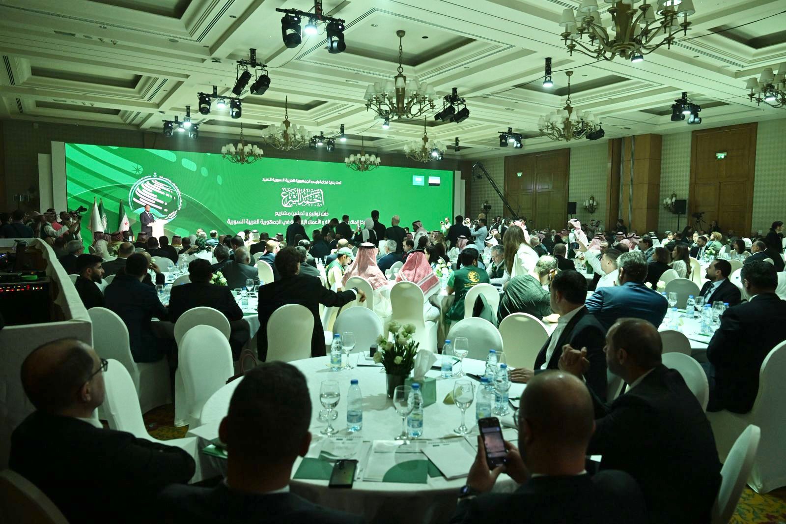 ثم ألقى معالي المشرف العام على مركز الملك سلمان للإغاثة الدكتور عبدالله بن عبدالعزيز الربيعة كلمة نقل فيها للحضور تحيات خادم الحرمين الشريفين الملك سلمان بن عبدالعزيز آل سعود وصاحب السمو الملكي الأمير محمد بن سلمان بن عبدالعزيز ولي العهد رئيس مجلس الوزراء – حفظهما الله – وتمنياتهما للشعب السوري الشقيق استئناف مسيرة البناء من أجل سوريا الآمنة المنفتحة على محيطها العربي.
