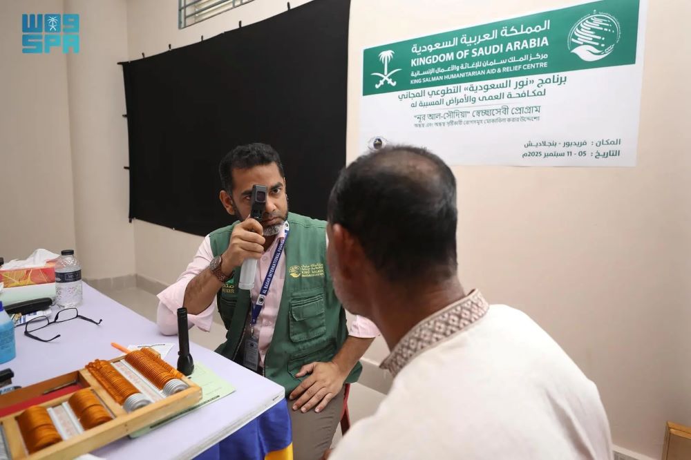 نفذ مركز الملك سلمان للإغاثة والأعمال الإنسانية مشروع نور السعودية التطوعي لمكافحة العمى والأمراض المسببة له في مدينة فريدبور بجمهورية بنغلاديش الشعبية، والمقام خلال الفترة من (6) حتى (11) سبتمبر 2025م، بالتعاون مع مؤسسة البصر العالمية.